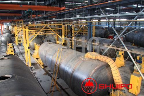 罐體生產(chǎn)線從鋼板下料、板材銑邊、板材對接、卷筒、整形、組裝、焊接、成型等先進的制造工藝和各工序自動化制造裝備;開發(fā)一套遠程集中控制系統(tǒng),實現(xiàn)制造工藝編制、生產(chǎn)設計安排、生產(chǎn)過程監(jiān)控管理等一體化控制。